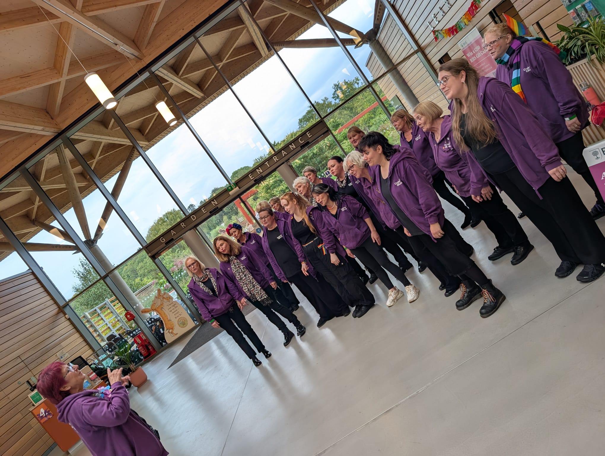 We sing a cappella (unaccompanied harmony) and belong to the Ladies Association of British Barbershop Singers
